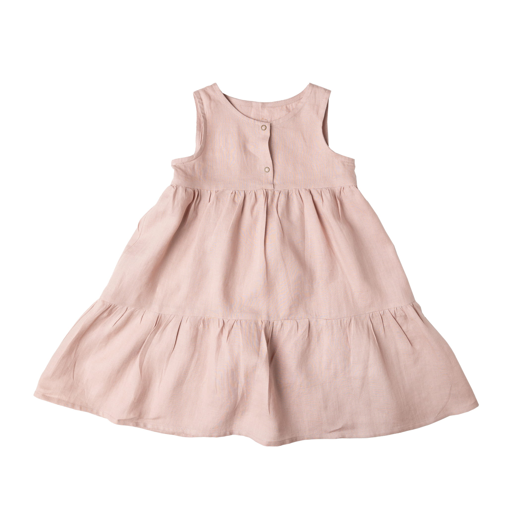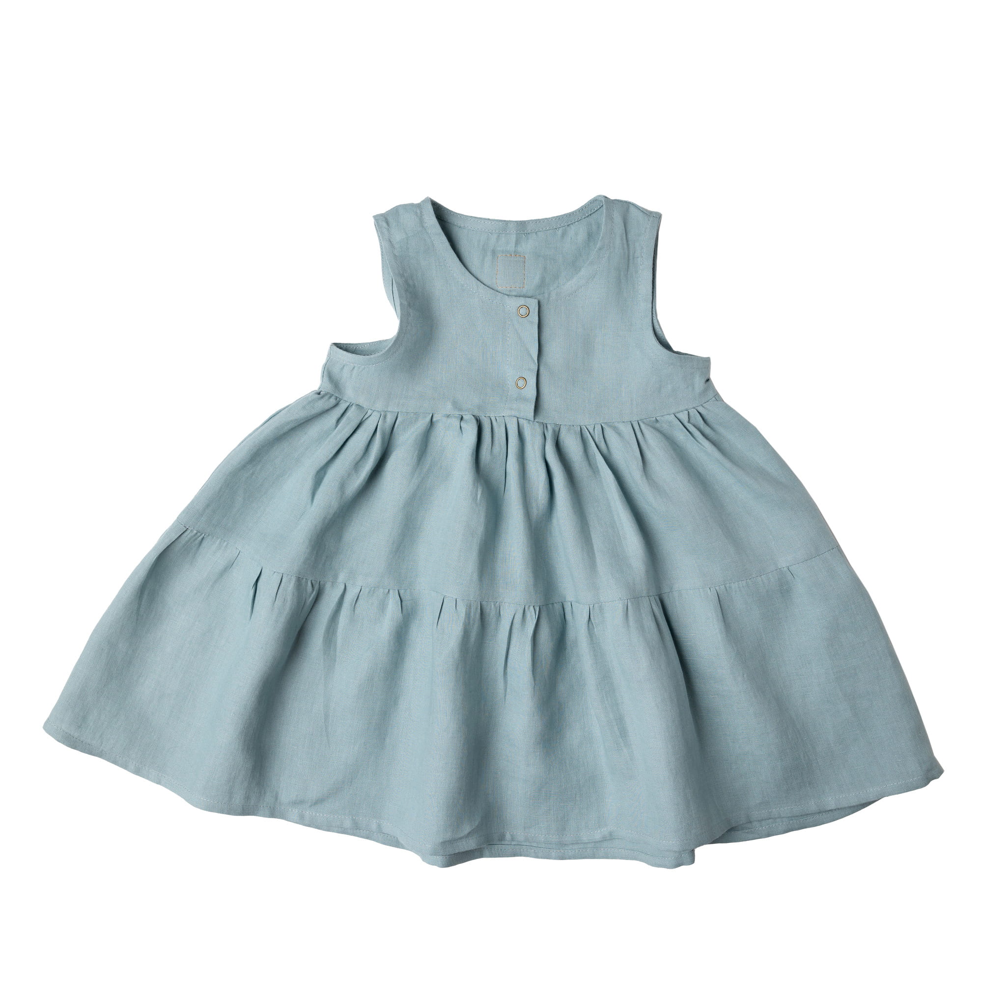 Sukienka z falbanami.Zapinana na trzy charakterystyczne napy.