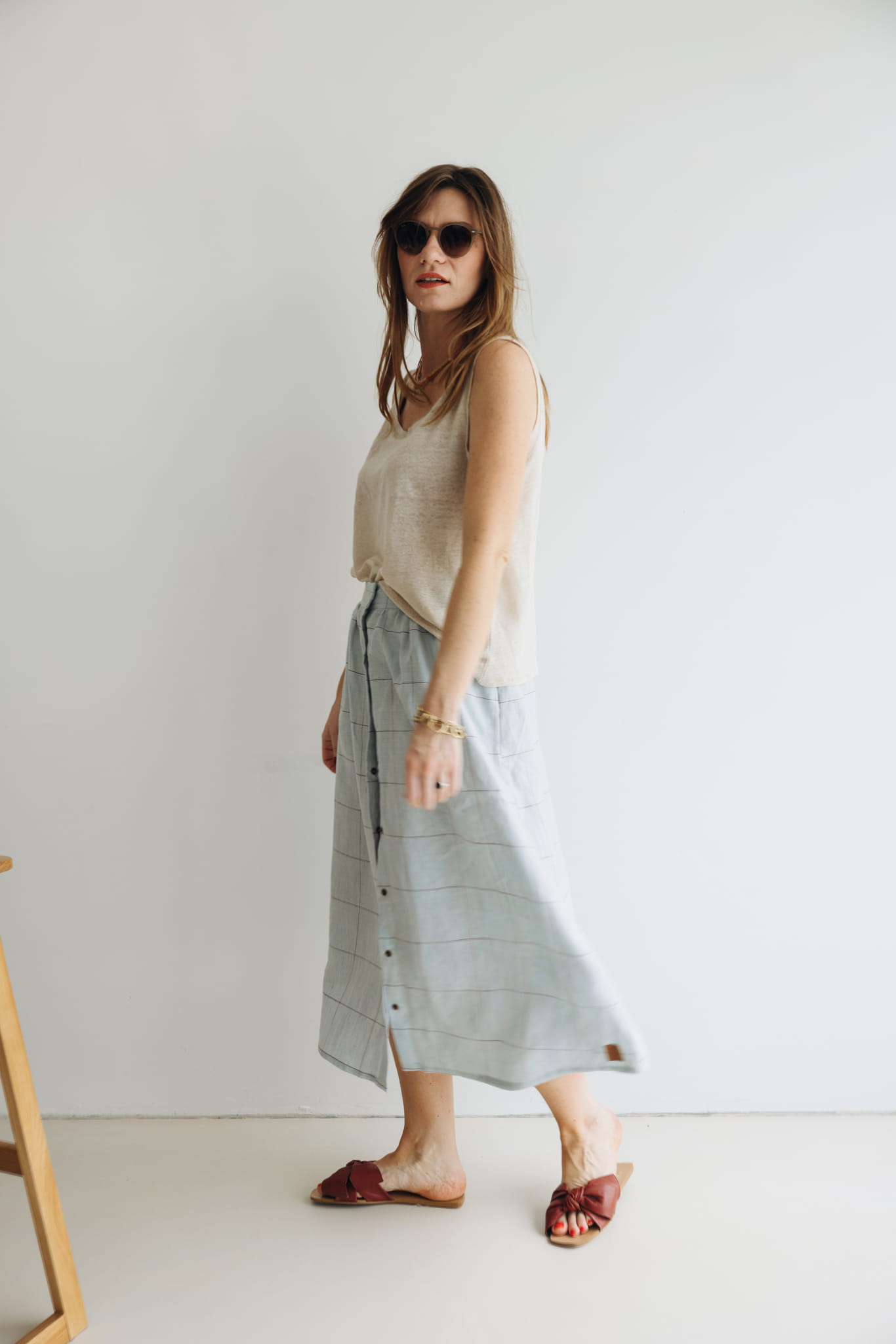 Spódnica lniana w kratkę
