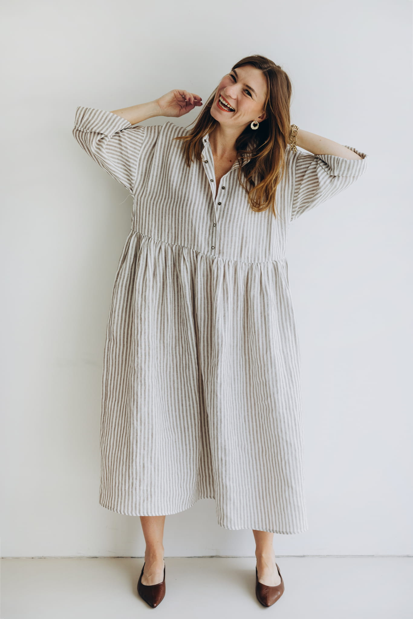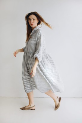 Suknia falbana z kołnierzykiem w paski