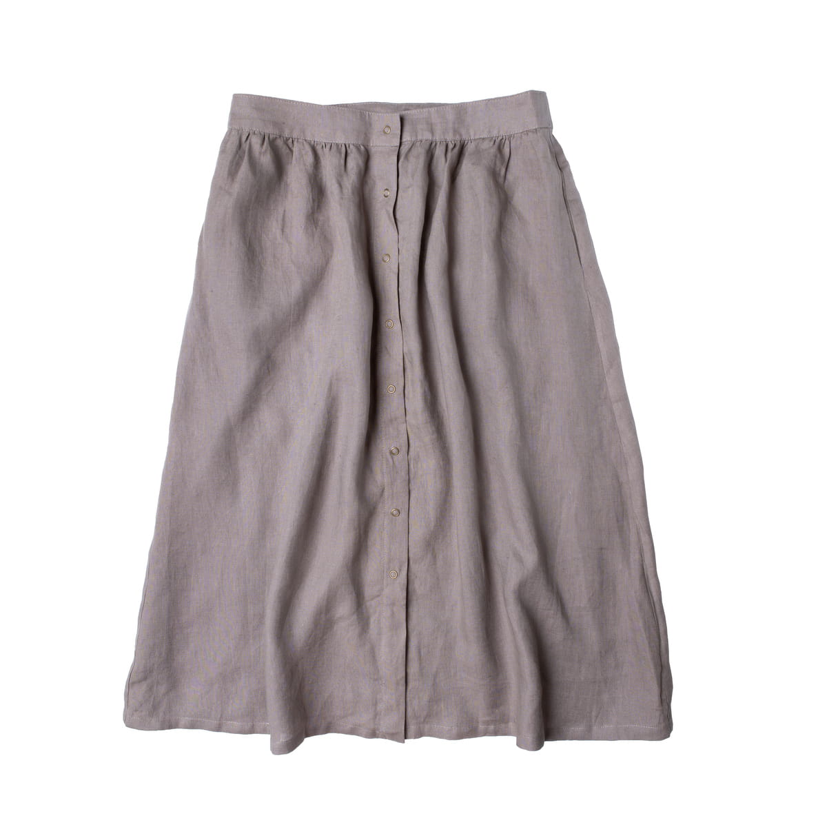 Lniana spódnica midi zapinana na napy – ponadczasowa i funkcjonalna